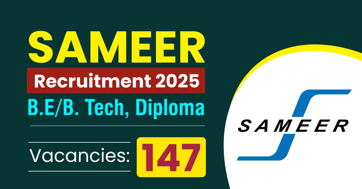 SAMEER Recruitment 2026 – Apply Online for 147 Posts.