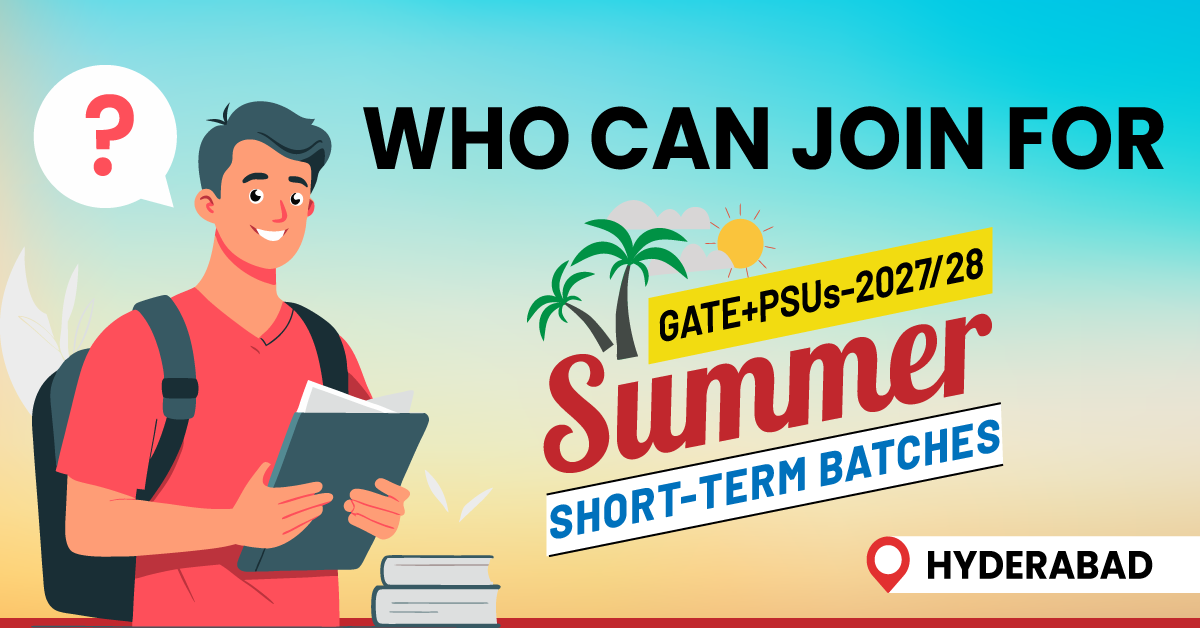 Summer short-term batches are specially designed for students and aspirants who want to use their summer break productively by strengthening core concepts, improving problem-solving skills, and getting an early edge in GATE, ESE, and PSU exam preparation. These batches offer focused learning in a short duration(60 Days) with expert guidance.